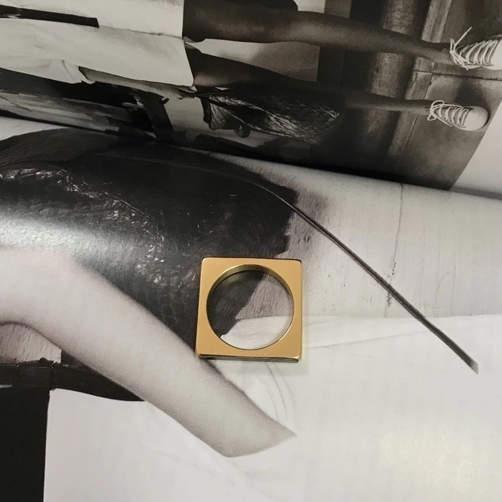 Se você ama acessórios com design diferenciado, esse anel é a definição de estilo! Com formato quadrado super moderno, ele combina o dourado sofisticado com um toque de esmalte preto, criando um contraste poderoso e fashionista. Feito em aço inox com banho de ouro 18k, é resistente e perfeito para quem curte joias marcantes.
