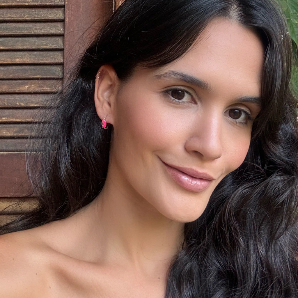 Micro cravejadas com zircônias brilhantes, essas argolas capturam a luz de maneira encantadora, enquanto o detalhe esmaltado em rosa neon, complementado por uma zircônia rosa claro ao centro, adiciona um toque de cor vibrante e frescor ao design.