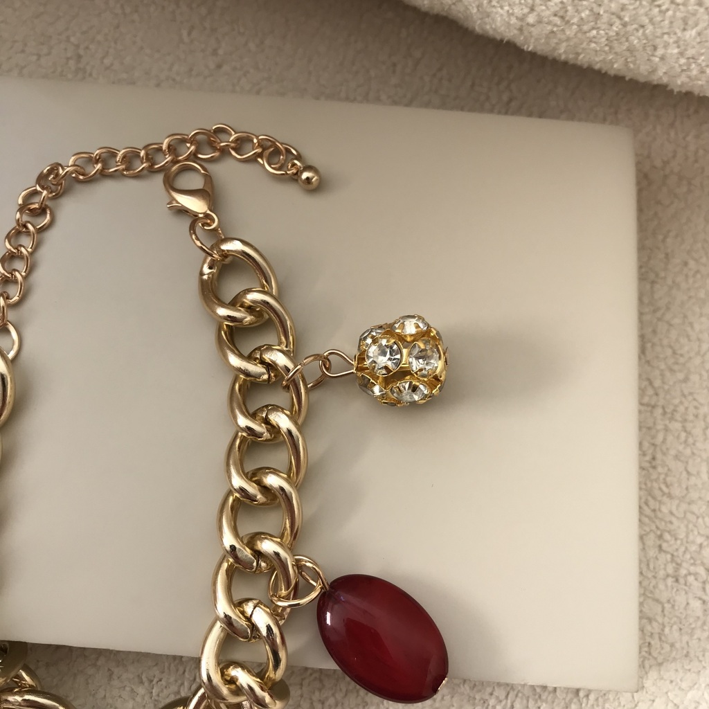 Pulseira corrente com vários pingentes, bijuteria fina.