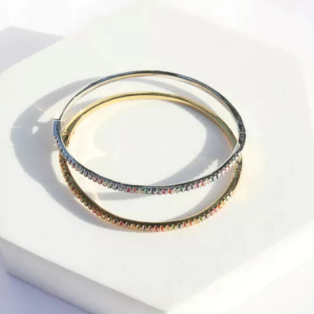 Bracelete semi jóia esmaltado e com banho de ouro 18k e cravejado de zircônia colorida.Acabamento impecável, fecho com trava, seguro e discreto.Tamanho: 6m de diâmetro